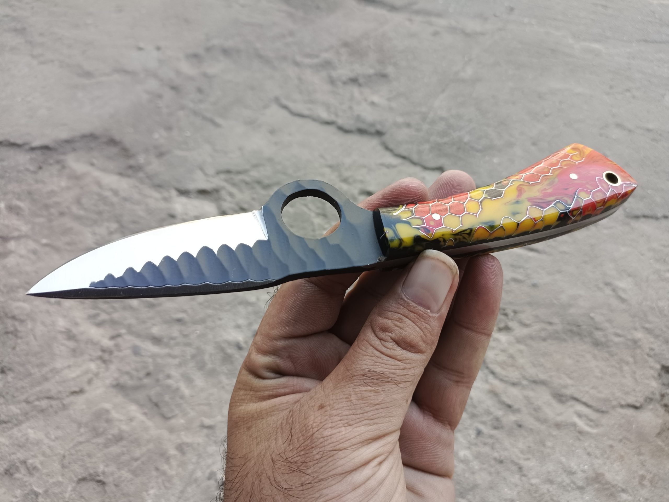 πͺ 7″ Hammered Stainless Steel Custom Knife with Resin Handle.