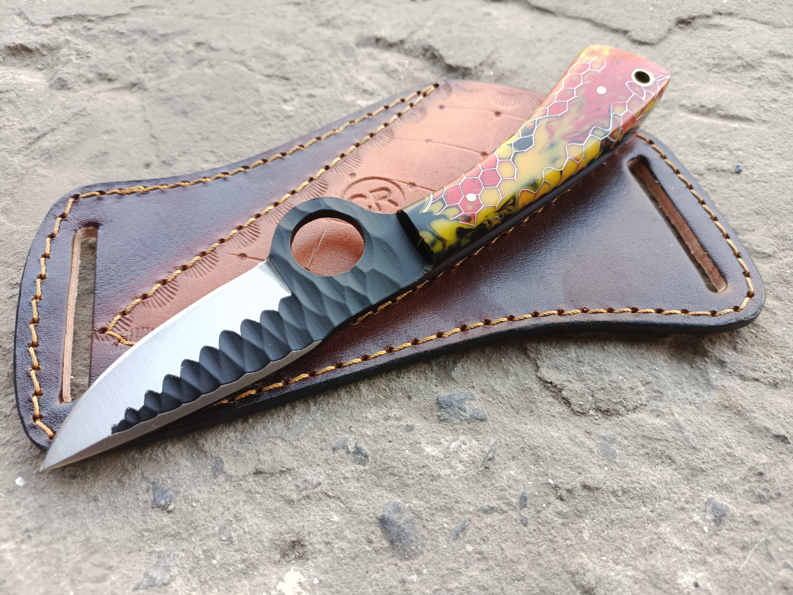 #CustomKnife #HammeredSteel #ResinHandle #7Inch #OutdoorGear #KnifeLover