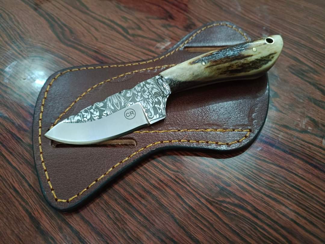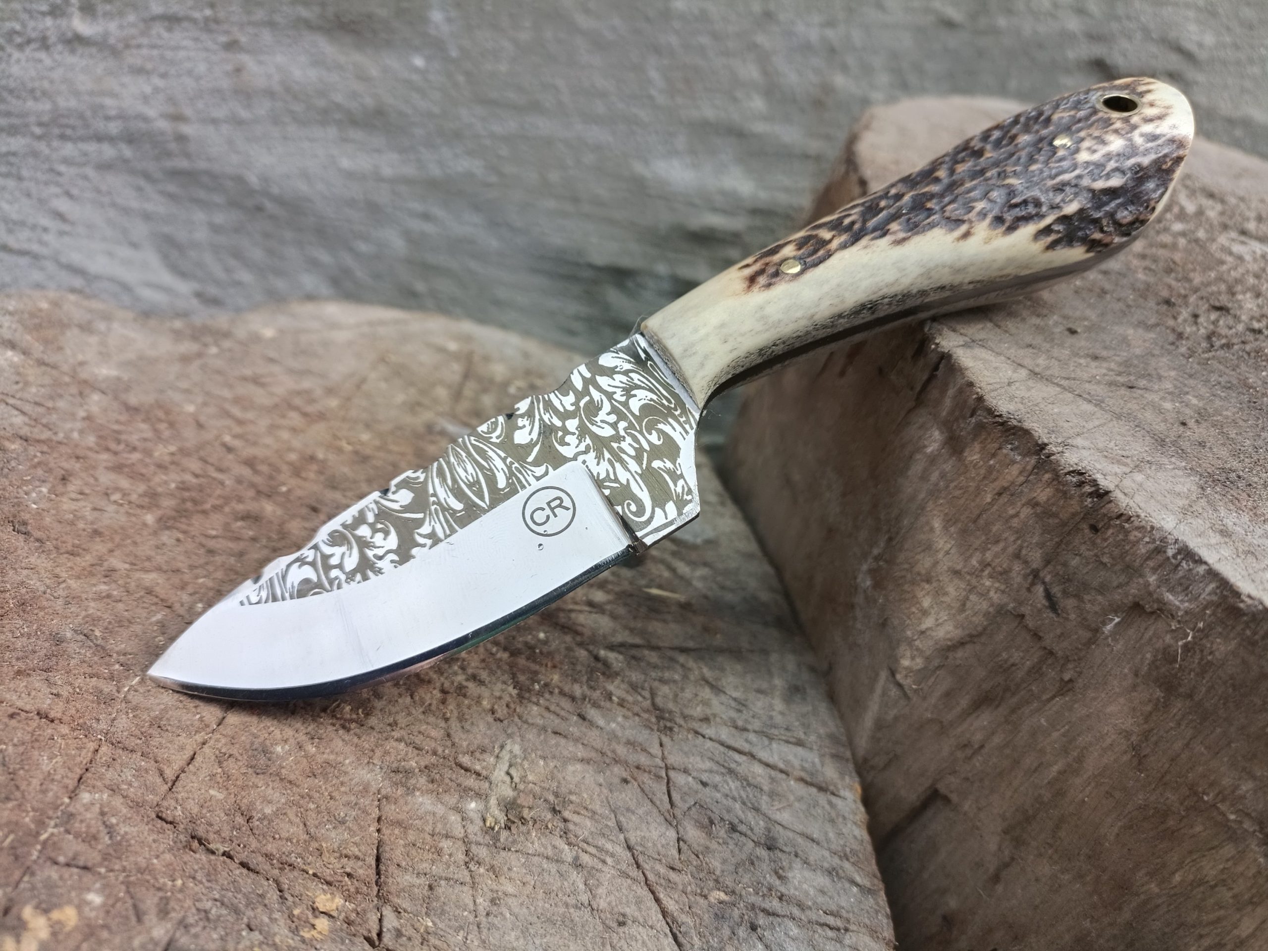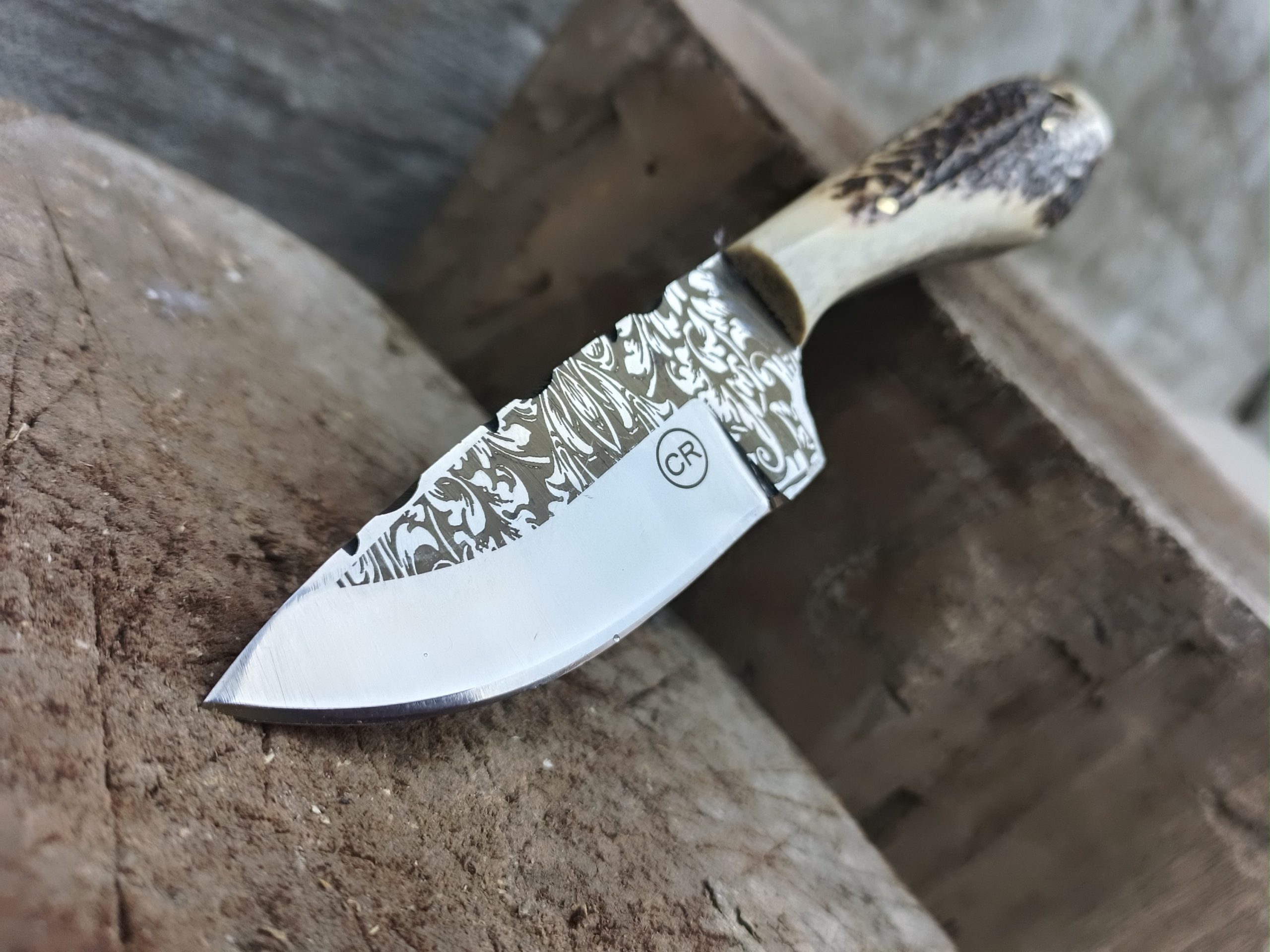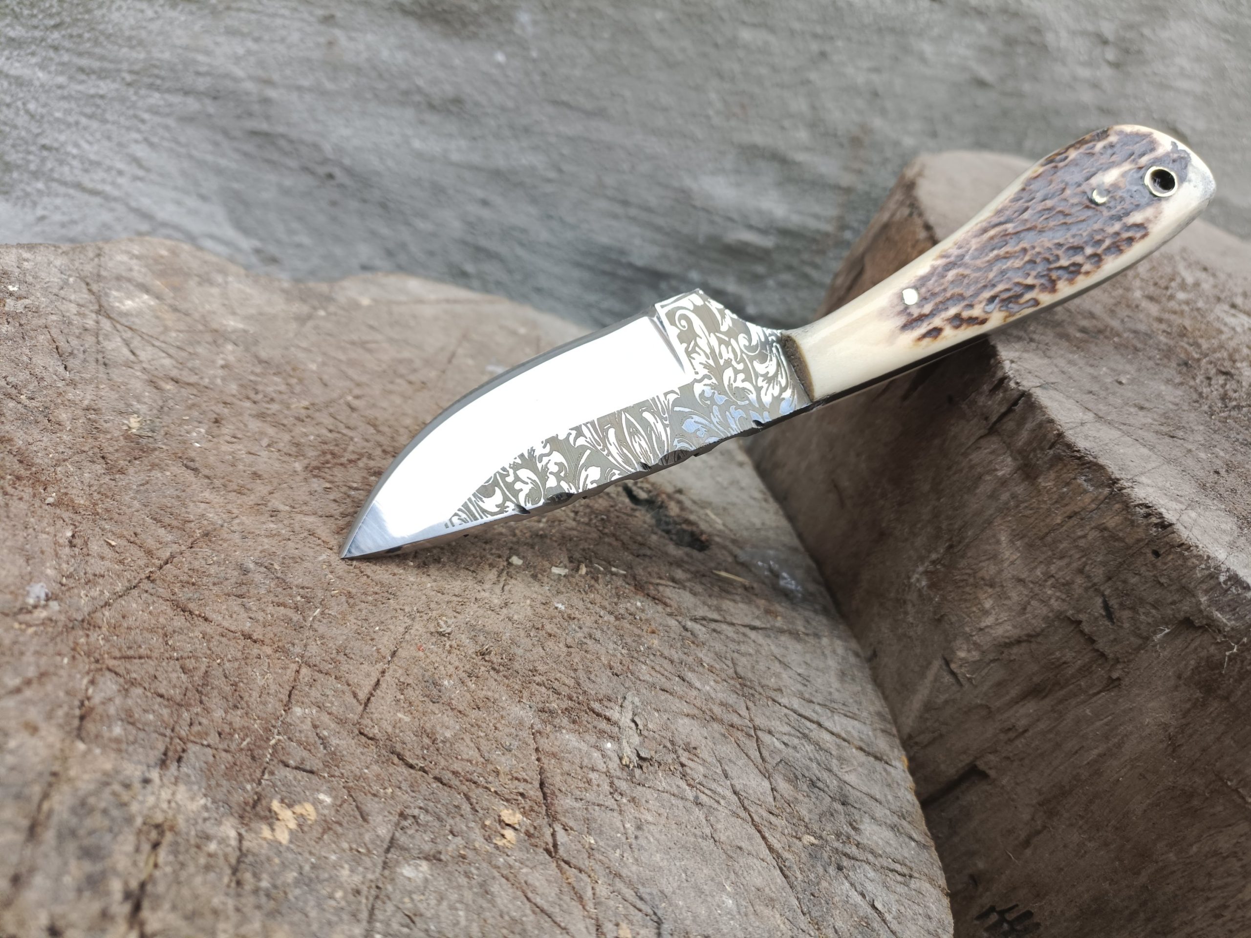 Handmade cowboy custom skinner knife made with laser stainless steel and stag handle razor sharp.